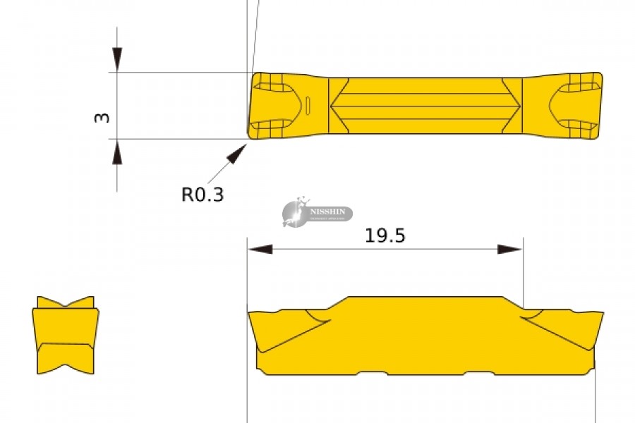 Mũi dao tiện cắt đứt, chạy biên dạng 3mm model GY2M0300F030L05-GM VP10RT